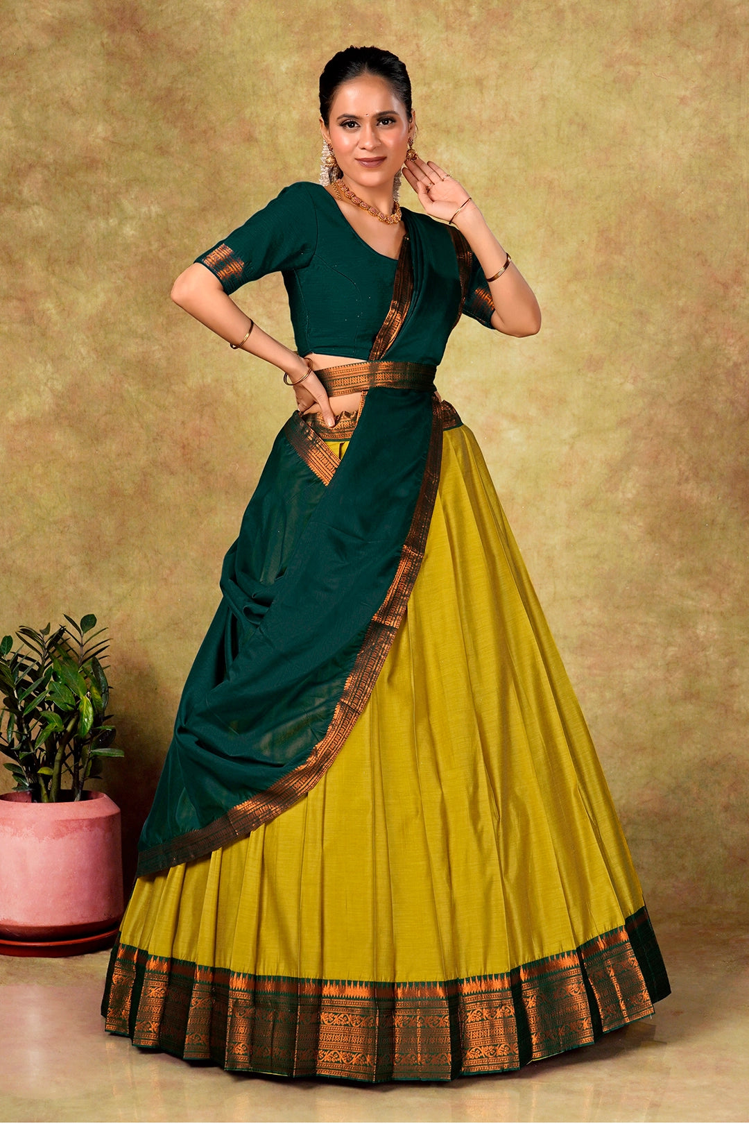 Musterd Cotton Silk Lehenga Choli with Zari Work