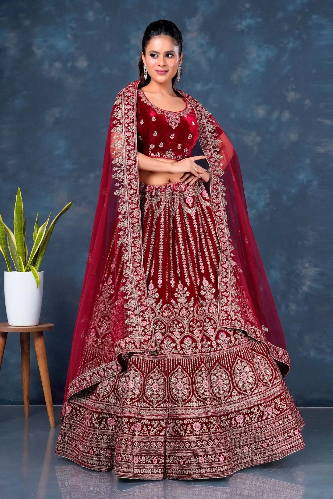 Maroon Heavy Designer Velvet Lehenga For Brides